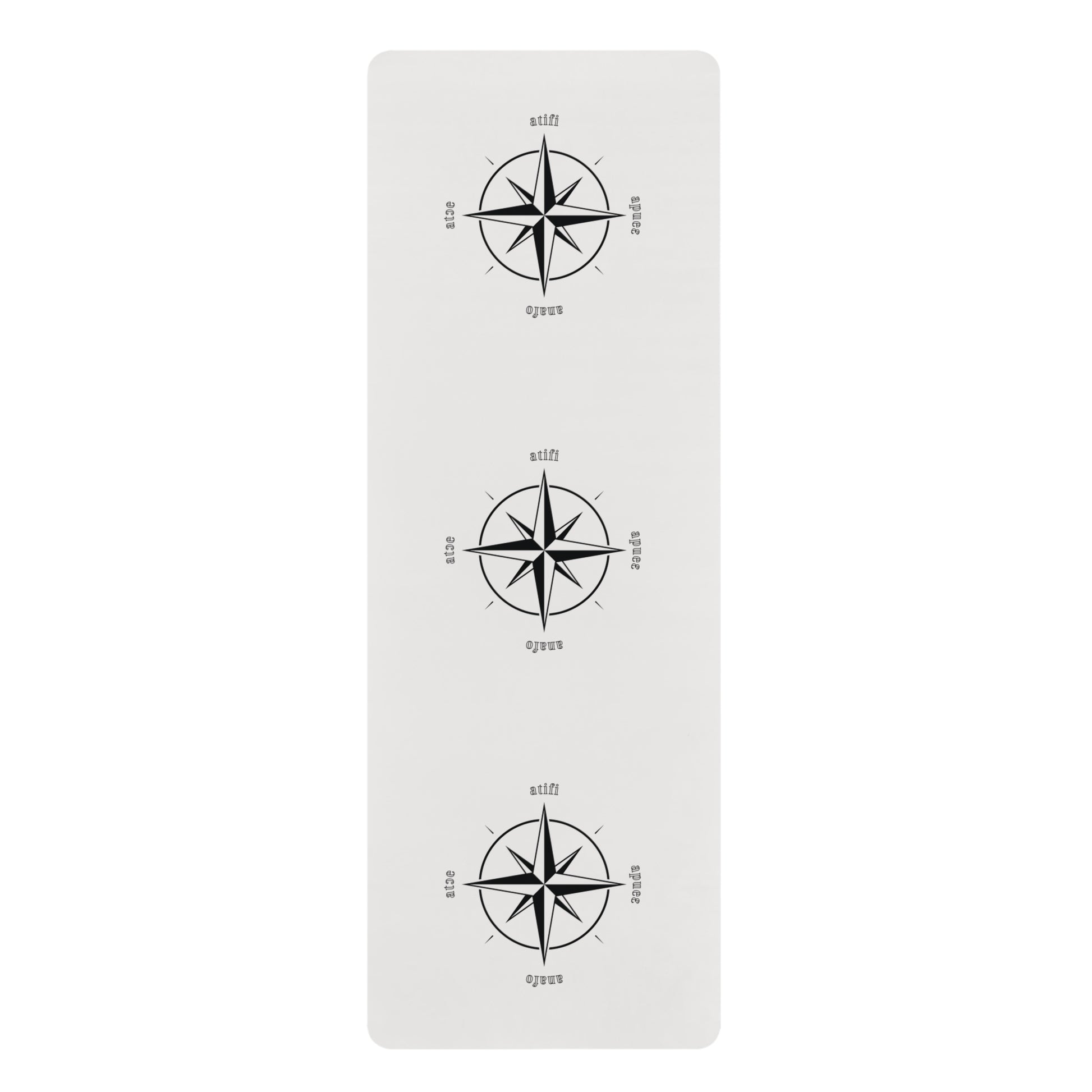 Our Beakunini polyester yoga mat with a microfiber suede top, is furnished with a solid cardinal point design in Twi(North, South, East, West). We can't say it will help with your bearings while exercising or praying but you'll definitely know which way is East...in Twi.