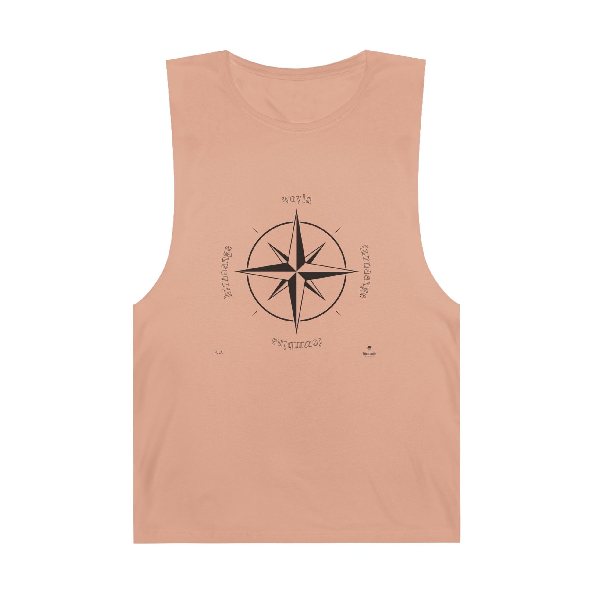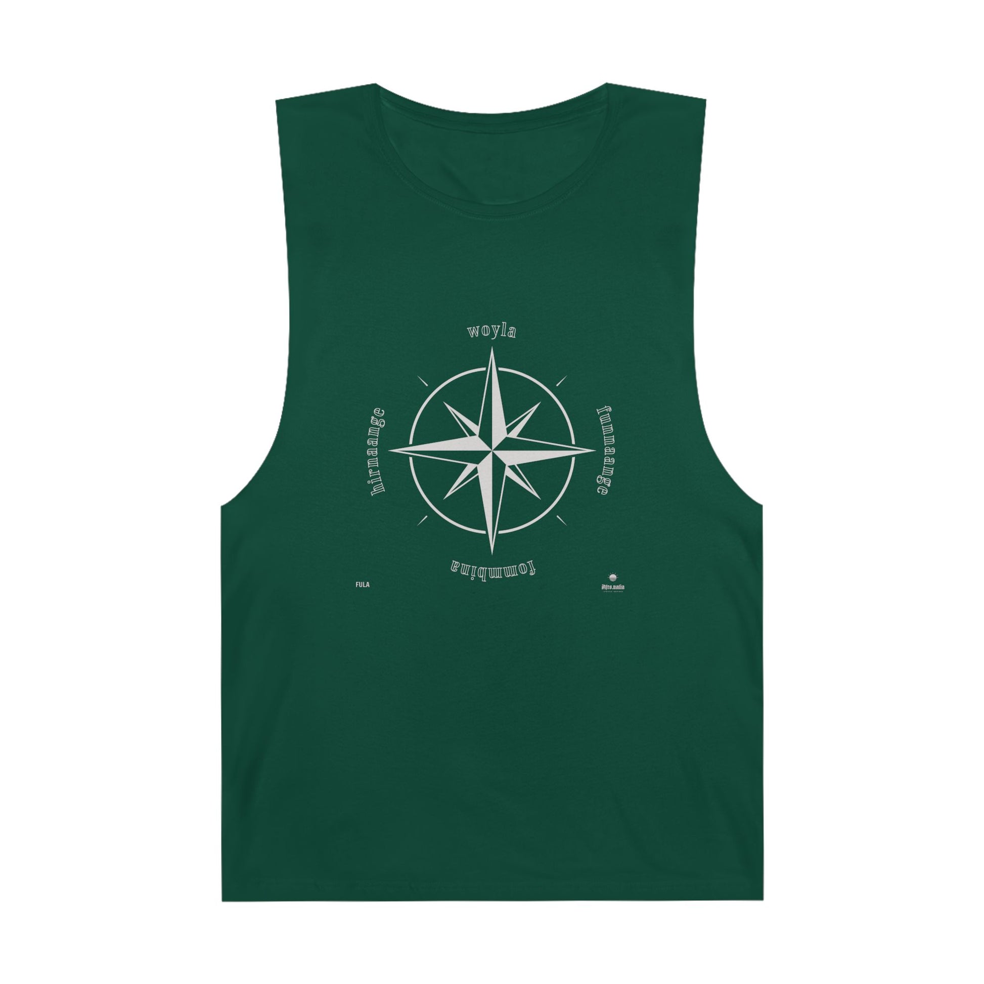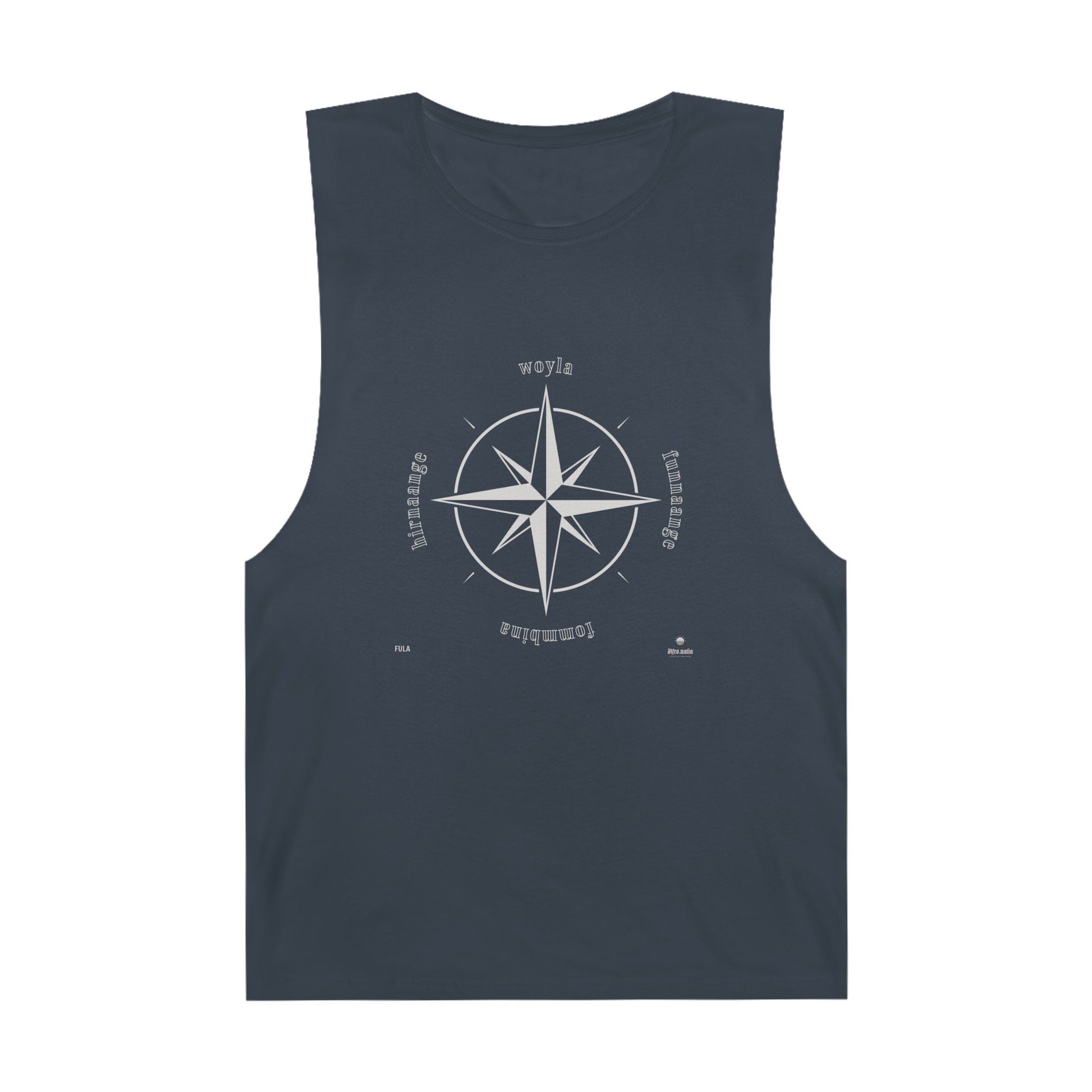 The cardinal points(North, South, East and West) in Fula, on this tank top, make for a cool AND educational appearance. Laawol is a Pular(Fula dialect) word that can mean "road", "journey" or "path".