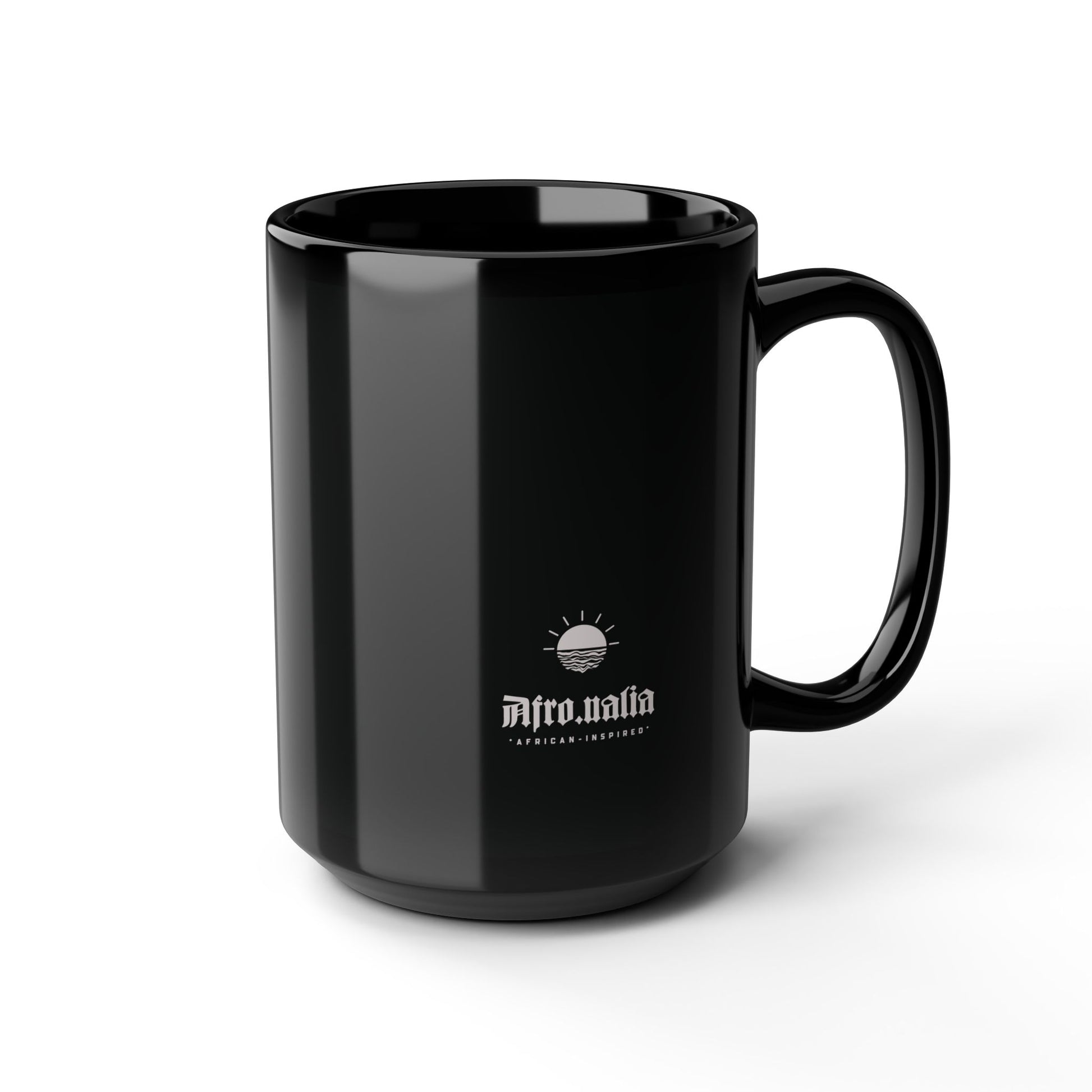 Warm your soul with a nice cuppa out of this black ceramic mug.