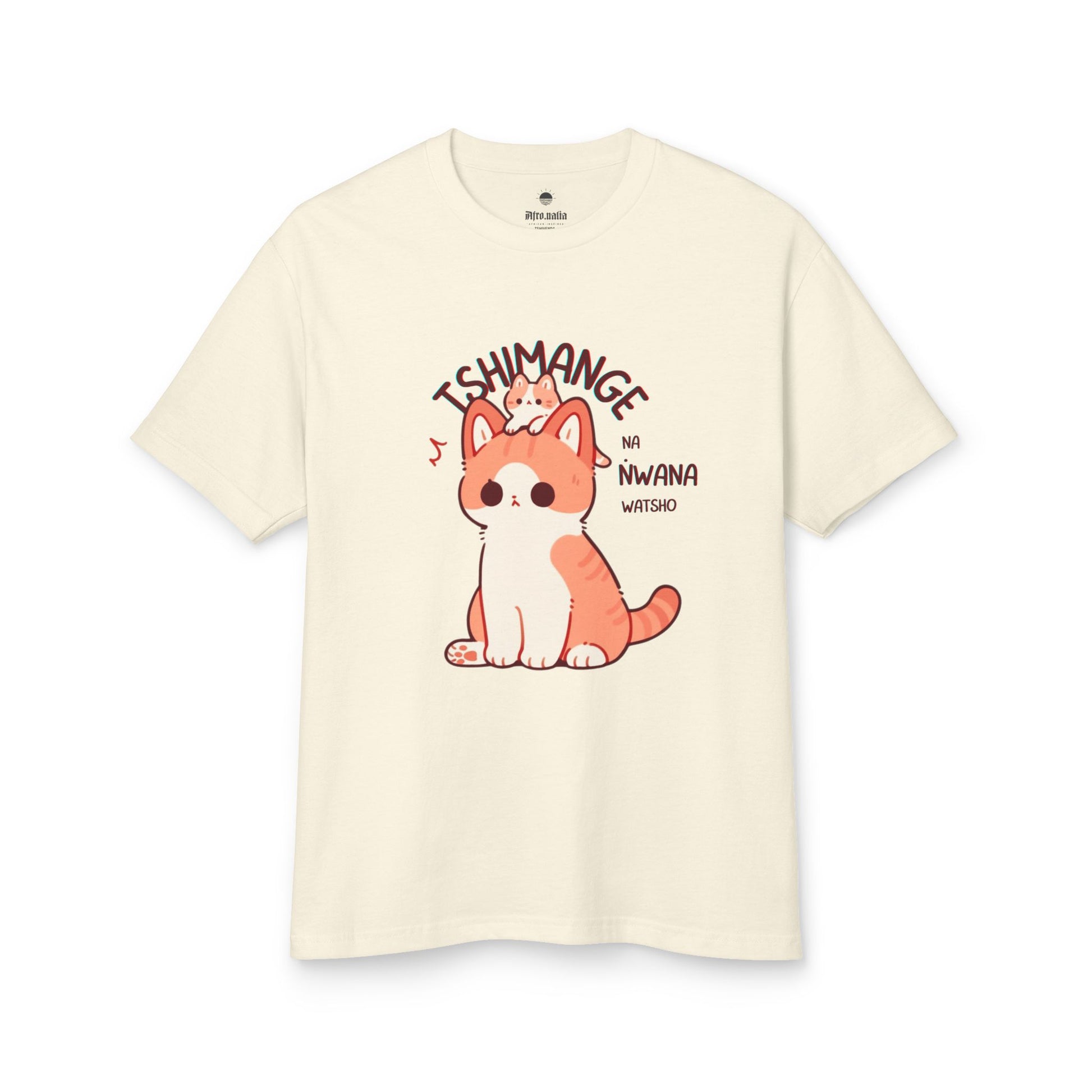 These tshirts come in 3 languages: TshiVenda, Igbo and Twi. The common message here translates to: "A cat and its baby"